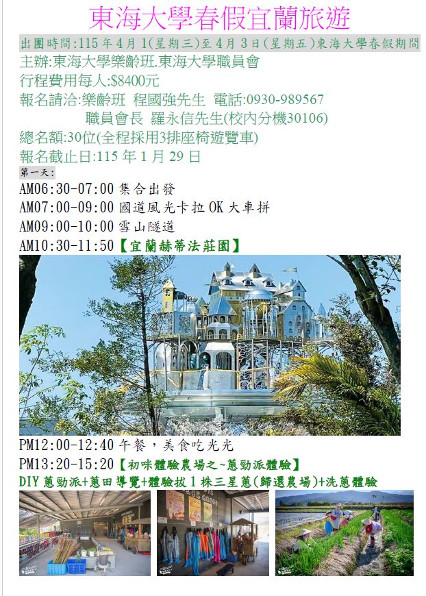 東海大學春假宜蘭旅遊(4/1-4/3)