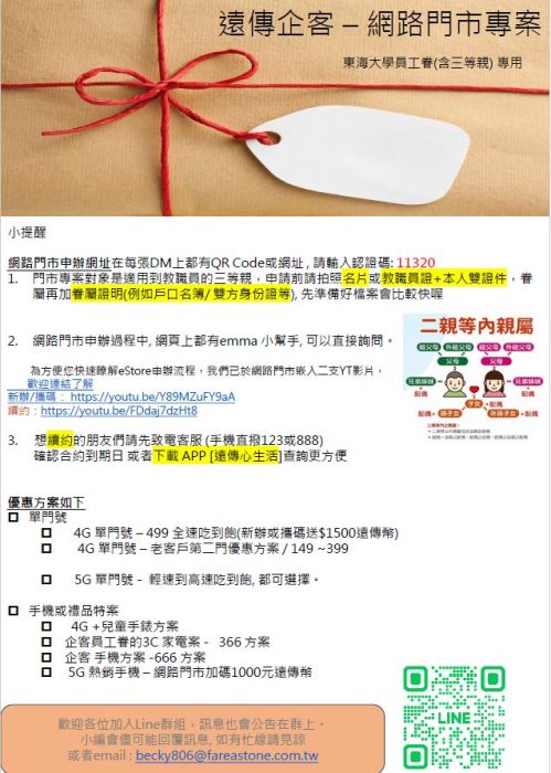 3.提供遠傳Line 群組,讓同仁查詢優惠內容及詢問,再麻煩協助提供同仁。